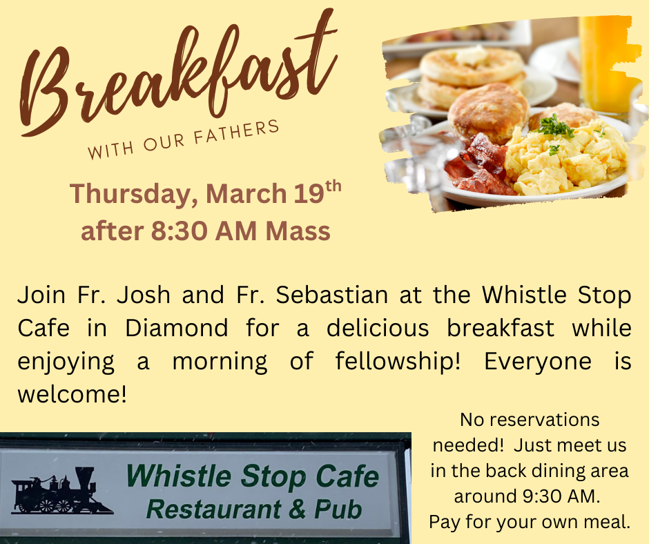 Thursday, March 19 - Breakfast w/Fathers Josh & Sebastian - After 8:30 a.m. Mass