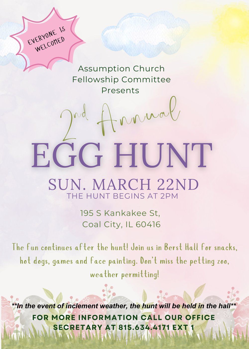 Sunday, March 22 - Easter Egg Hunt - 2:00 p.m.