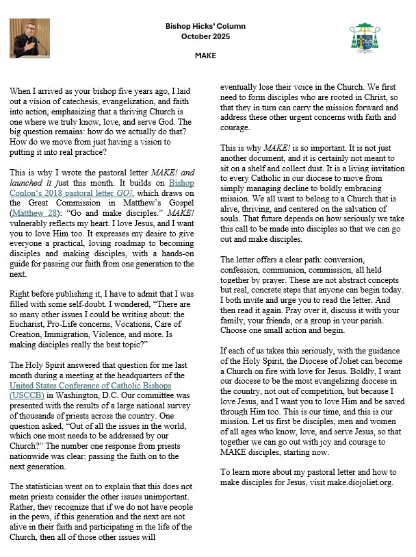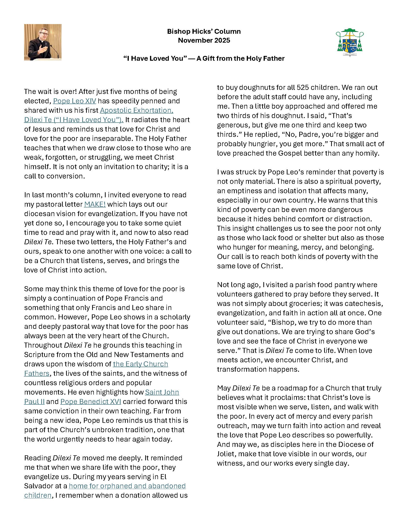 Please return your pledge envelopes to the diocese via USPS or click on the link to your left to donate online.