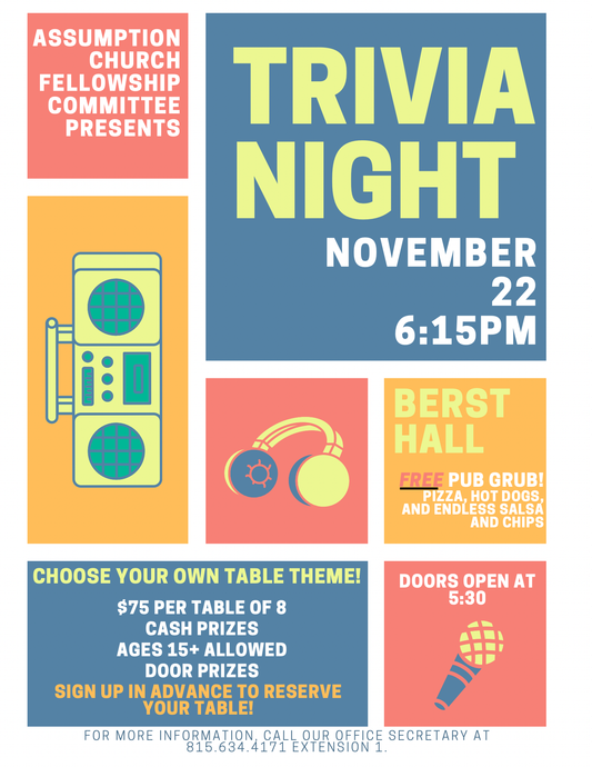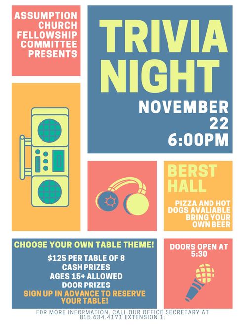 Saturday, November 22 - Trivia Night - 6:00 p.m.
