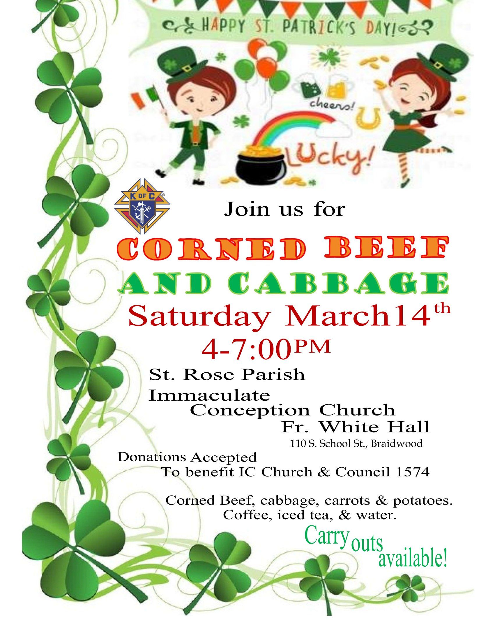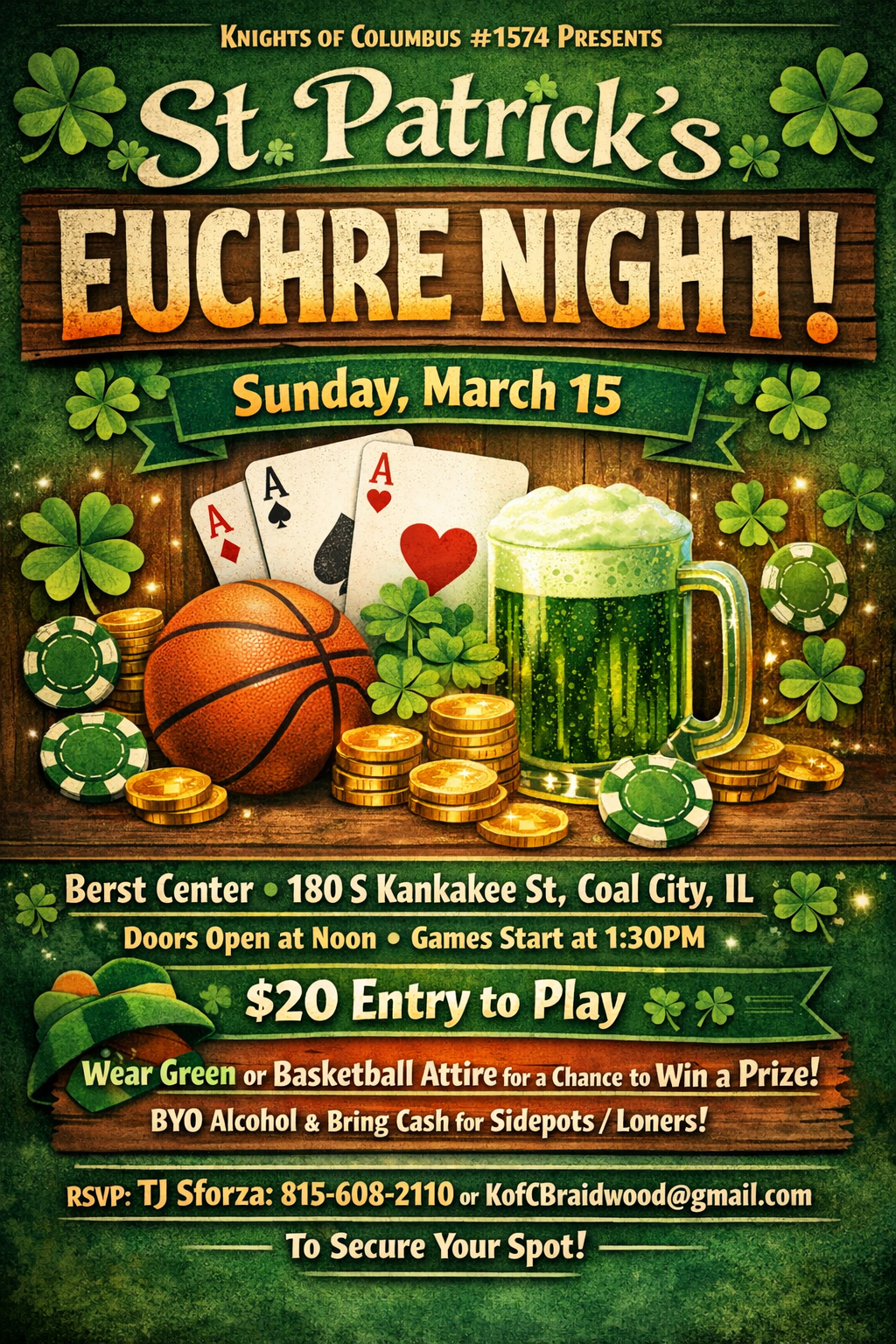 Sunday, March 15 - Knights of Columbus St. Patrick's Euchre Night - 12:00 p.m.