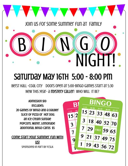 Saturday, May 16 - Summer Fun Family Bingo - 5:00 p.m.