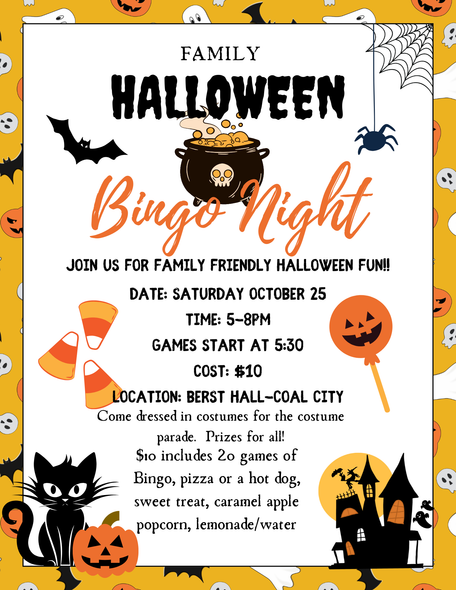 Saturday, October 25 - Family Halloween Bingo - 5:00 p.m.