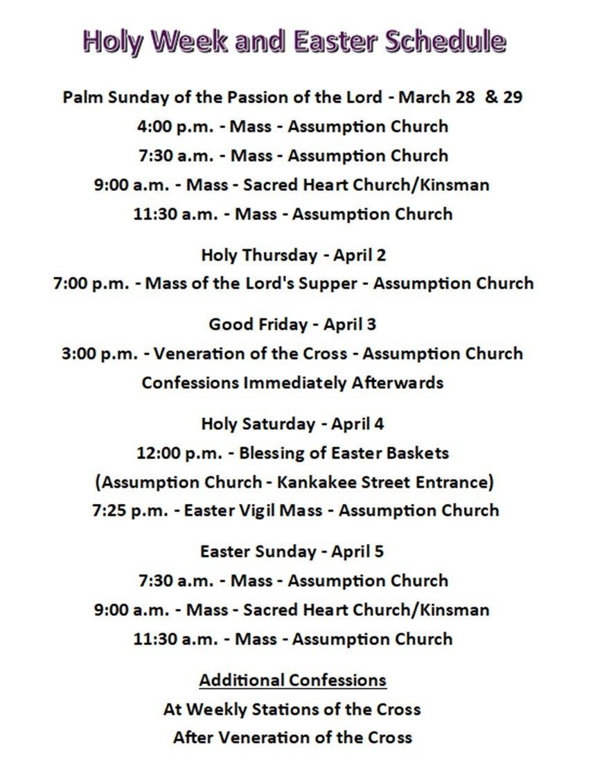 Saturday - 3:15 p.m. to 3:45 p.m. (First Saturday only - 8:00 a.m. to 8:20 a.m.)