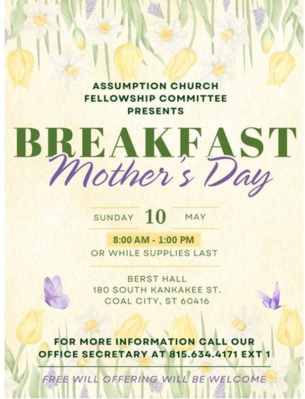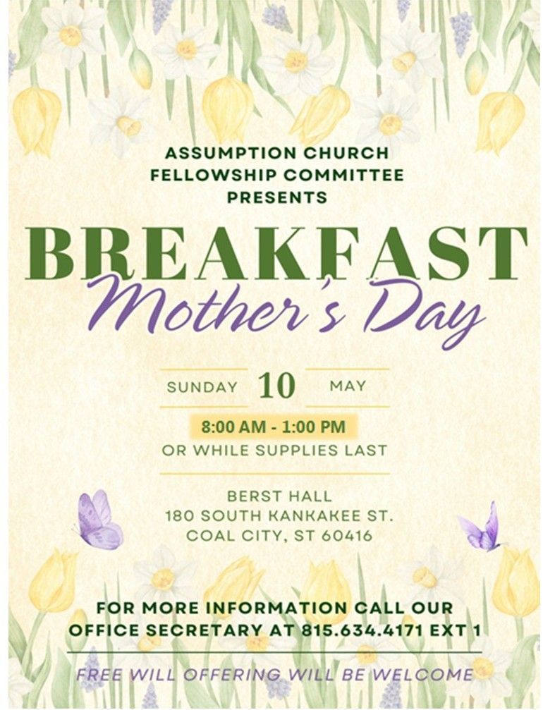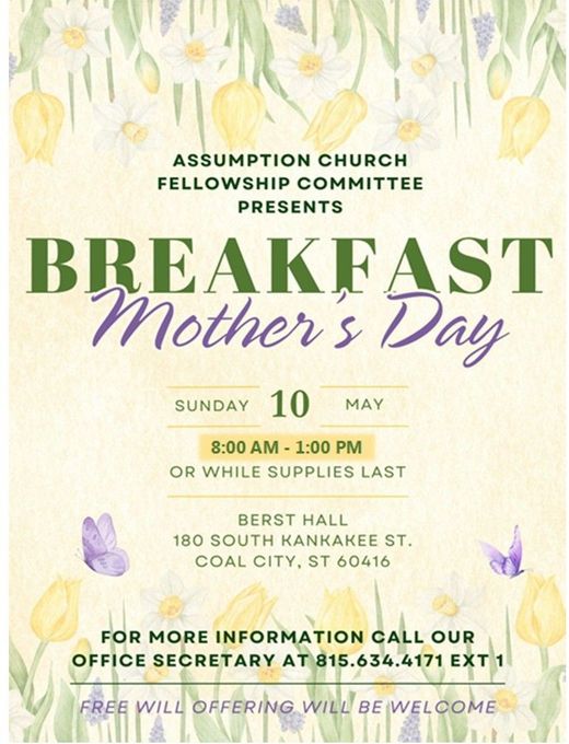 Sunday, May 10 - Mother's Day Breakfast - 8:00 a.m.